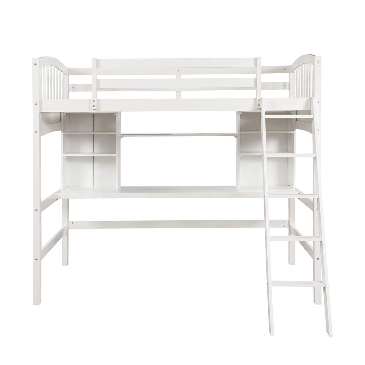 Shop white wood loft bunk bed with desk under featuring two sleeping spaces in one. High Loft Wood Bed with Desk Yes4Wood Everest 100 Pinewood No Box Spring Needed. Adults teens students and kids will all appreciate what a loft bunk bed can do.