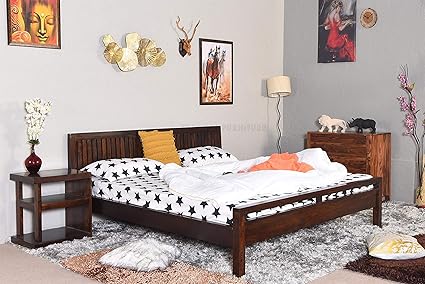 Ebansal Wooden Queen Size Bed Without Storage Solid Wood Bed For Bedroom Furniture Sheesham Wood Choclate Brown Amazon In Furniture