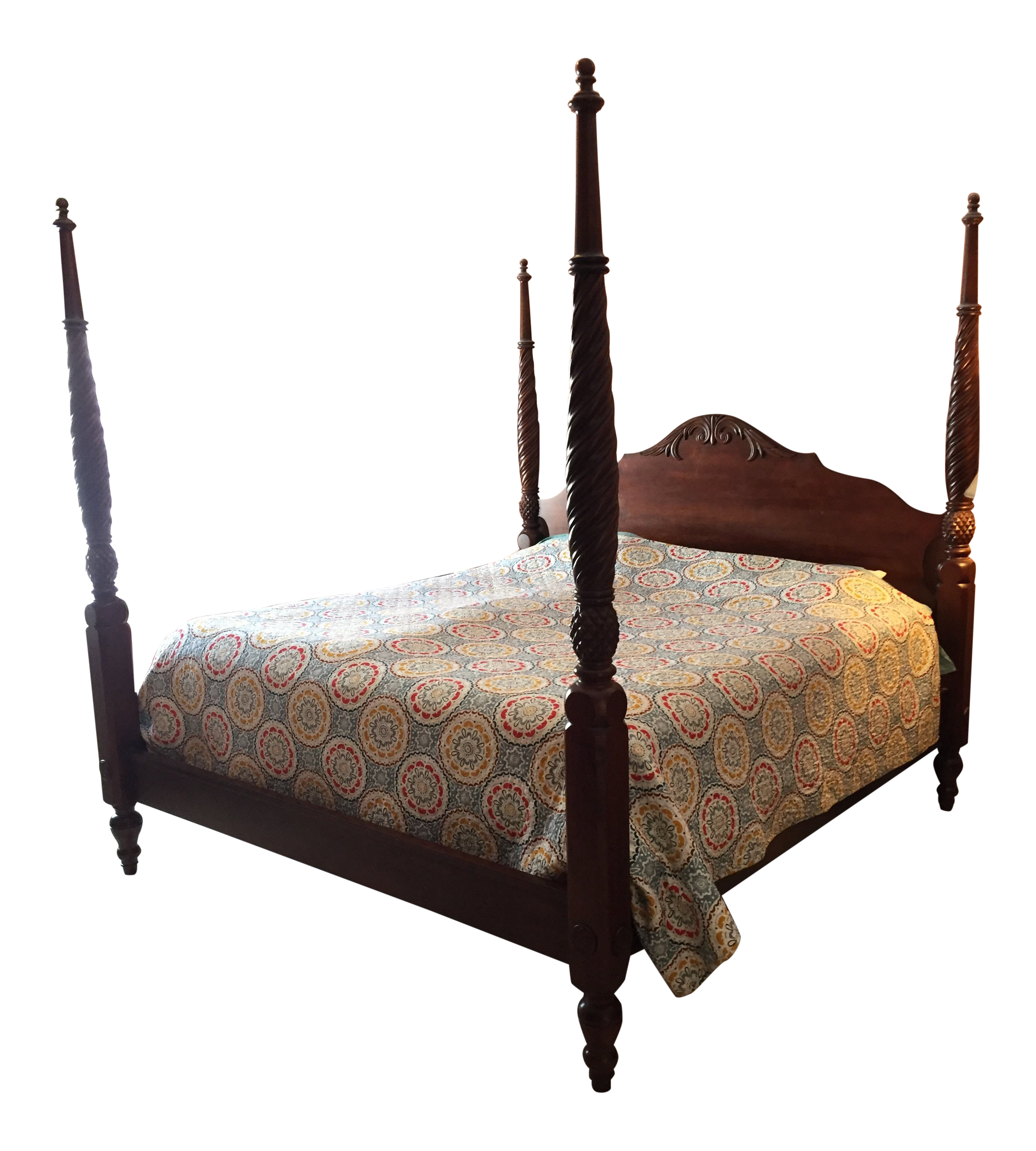 New Arrival Item specific photos coming soon photos shown are for representation only. Featuring rope turned bedposts with carved pineapples and botanical inspired carvings on the headboard. It is a beautiful piece.