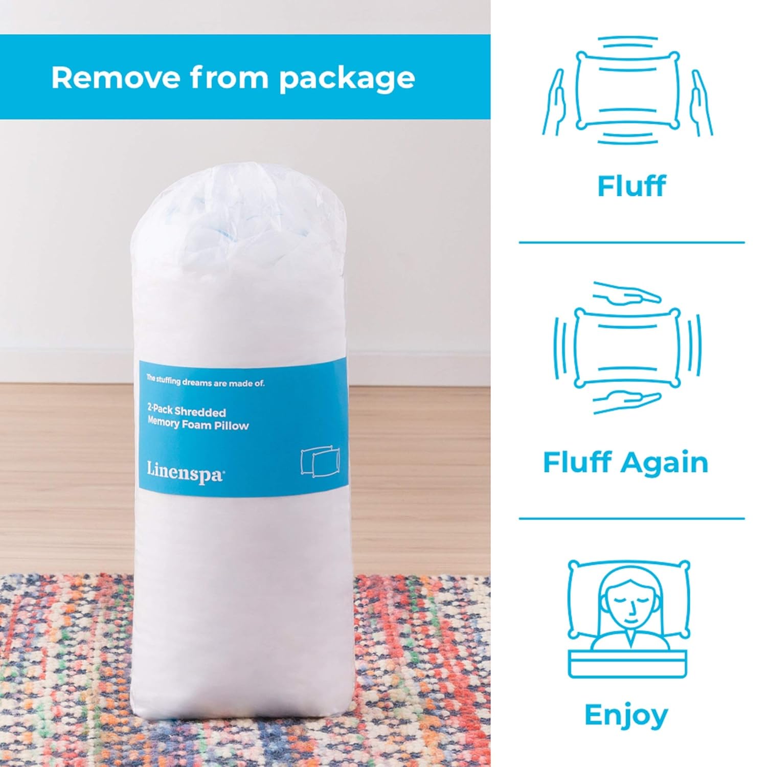 Linenspa 2 Pack Shredded Memory Foam Pillows Moldable Fluffable Customizable Universally Comfortable Standard Amazon In Home Kitchen