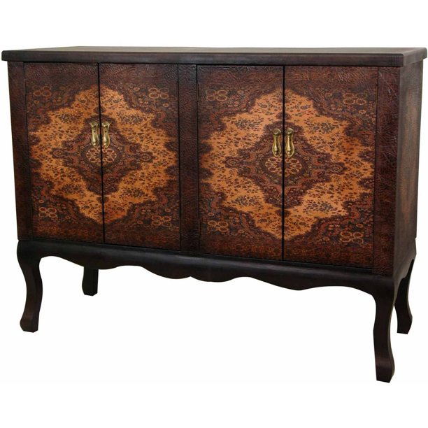 Oriental Furniture Olde Worlde Vintage Double Chest. We dont know when or if this item will be back in stock. Description A simple beautifully designed and proportioned three drawer chest with elegant Queen Ann style carved legs and apron complimenting the lovely European design faux leather finish. A distinctive and beautiful medallion pattern mirrored on the double doors.