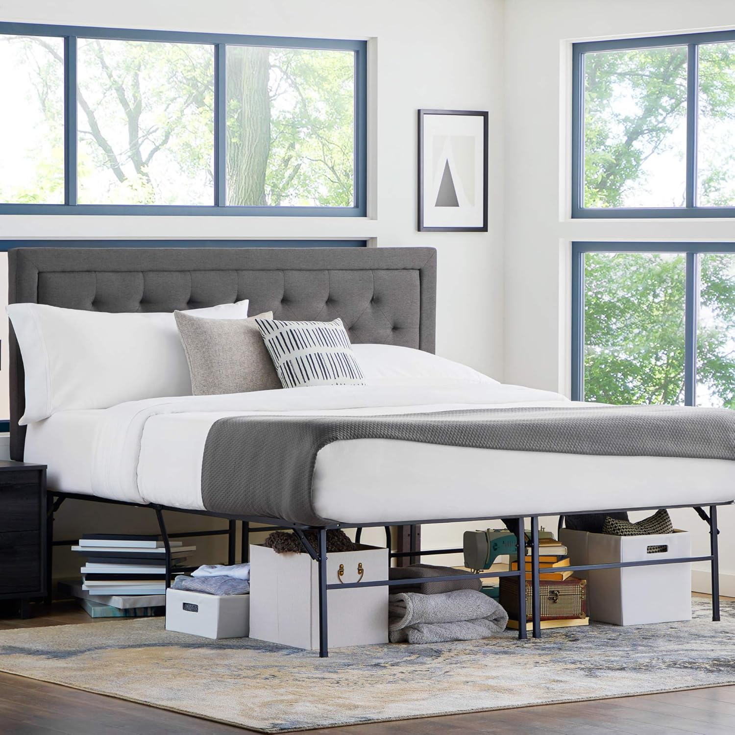 Lightweight platform frame eliminates the need for a box spring. SHA CERLIN Industrial Queen Size Metal. HAAGEEP 18 Inch Queen Bed Frame No Box Spring Needed High Platform Bedframes with Storage Size Black Metal.