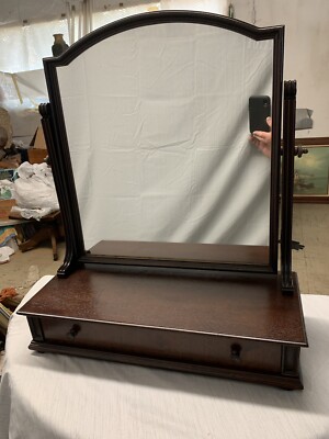 Antique Dresser Top Shaving Mirror Stand W Drawer Vanity Mahogany Dressing Shave Shaving Mirror Mirror Standing Mirror