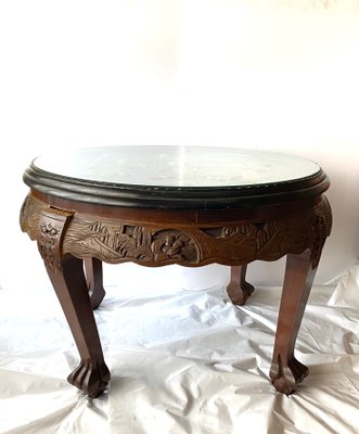 20th Century Asian Mahogany Carved Coffee Tea Table And Stools 4 Pieces In 2021 Tea Table Oval Coffee Tables Mahogany
