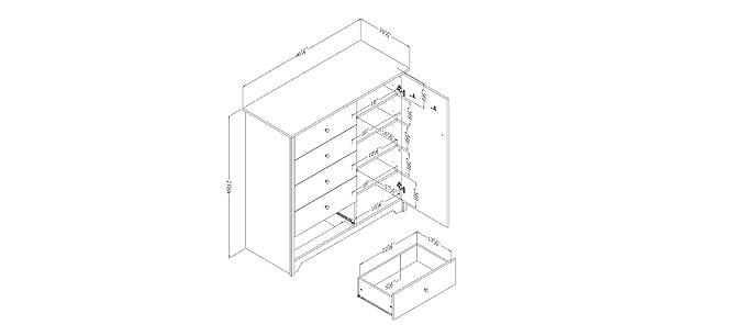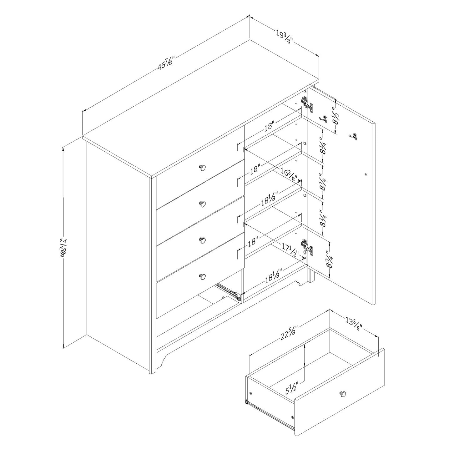 South Shore Vito Door Chest with 5 Drawers Sumptuous Cherry Multiple storage spaces and a minimalist style make this armoire an ideal piece you can add to your bedroom. NA composite Chest Depth in. The unit is divided in 5 drawers and a closed door compartment with 5 shelves - 3 adjustable that can support up to 25 lbs and one fixed that can support up to 50 lbs. In addition it will meet all your storage needs.